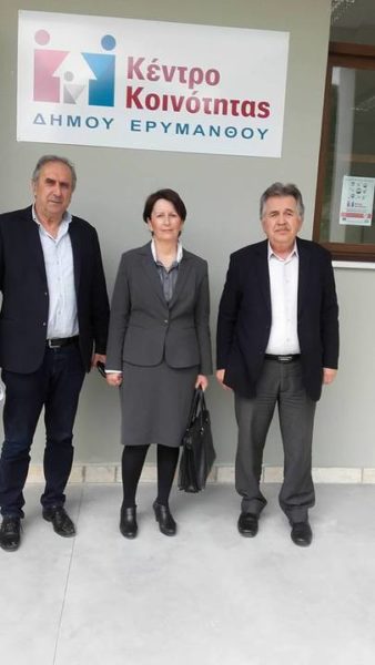 Τις νέες εγκαταστάσεις του Κέντρου Κοινότητας του Δήμου Ερυμάνθου, ένα από τα 19 Κέντρα που έχει δημιουργήσει η Περιφέρεια Δυτικής Ελλάδας, επισκέφθηκε σήμερα Τετάρτη 14 Μαρτίου 2018, η εντεταλμένη Περιφερειακή Σύμβουλος, βοηθός Περιφερειάρχη σε θέματα άρσης κοινωνικών ανισοτήτων Αναστασία Τογιοπούλου και ενημερώθηκε για την λειτουργία του.