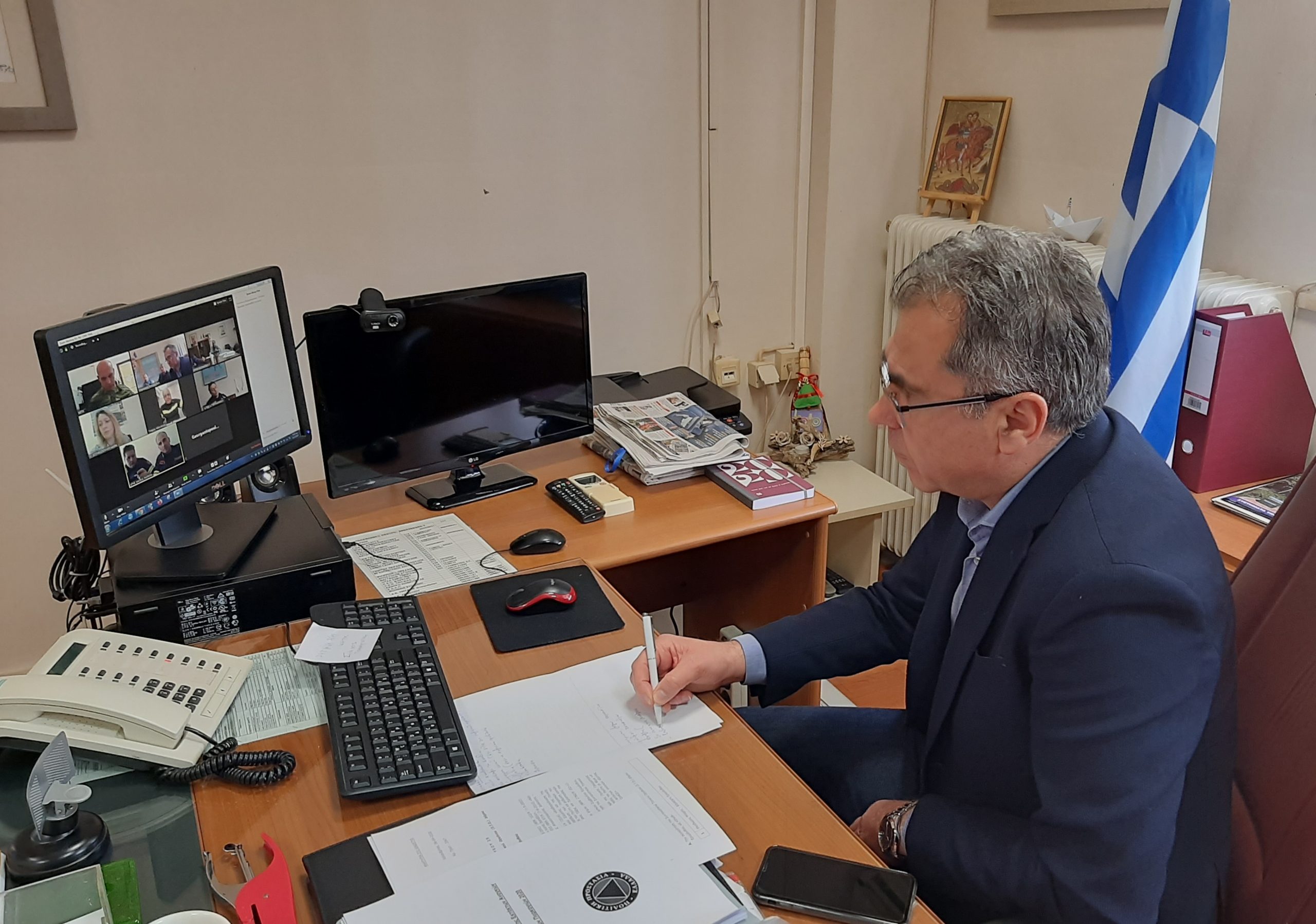 Μέσω τηλεδιάσκεψης λόγω των μέτρων για τον περιορισμό μετάδοσης του κορωνοϊού συνεδρίασε το Συντονιστικό Τοπικό Όργανο Πολιτικής Προστασίας (Σ.Τ.Ο.) του Δήμου Ερυμάνθου υπό την προεδρία του Δημάρχου, Θεόδωρου Μπαρή.