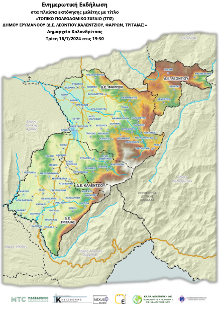 Διοργάνωση ενημερωτικής εκδήλωσης με τίτλο “ΤΟΠΙΚΟ ΠΟΛΕΟΔΟΜΙΚΟ ΣΧΕΔΙΟ ΔΗΜΟΥ ΕΡΥΜΑΝΘΟΥ”, Τρίτη 16-07-2024, ώρα 19:30, αίθουσα Δημοτικού Συμβουλίου (νέο Δημαρχείο Χαλανδρίτσας) Home / Ενημέρωση / Ενημερωτική εκδήλωση ΤΟΠΙΚΟΥ ΠΟΛΕΟΔΟΜΙΚΟΥ ΣΧΕΔΙΟΥ ΔΗΜΟΥ ΕΡΥΜΑΝΘΟΥ Αφίσα Εκδήλωσης