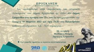 ∆ΙΑΚΗΡΥΞΗ ΔΙΑΓΩΝΙΣΜΟΥ ΜΕ ΑΝΟΙΚΤΗ ΔΙΑΔΙΚΑΣΙΑ ΜΕΣΩ ΕΣΗΔΗΣ ΓΙΑ ΤΗΝ ΠΡΑΞΗ : «ΣΧΕΔΙΑΣΗ ΚΑΙ ΠΑΡΑΓΩΓΗ ΠΛΗΡΟΦΟΡΙΑΚΟΥ-ΤΟΥΡΙΣΤΙΚΟΥ ΟΔΗΓΟΥ ΤΟΥ ΔΗΜΟΥ ΕΡΥΜΑΝΘΟΥ» ΠΡΟΫΠΟΛΟΓΙΣΜΟΥ 50.000,00 €, ΣΥΜΠΕΡΙΛΑΜΒΑΝΟΜΕΝΟΥ ΤΟΥ Φ.Π.Α.