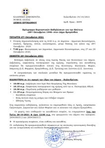 Πρόγραμμα Εορταστικών Εκδηλώσεων για την Επέτειο «28ης Οκτωβρίου 1940» στον Δήμο Ερυμάνθου ΠΡΟΓΡΑΜΜΑ ΕΟΡΤΑΣΜΟΥ 28ης ΟΚΤΩΒΡΙΟΥ 2021