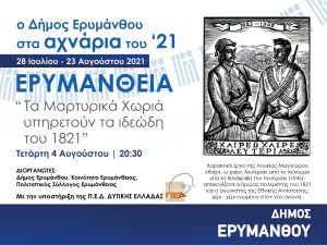 ΕΡΥΜΑΝΘΕΙΑ 4-8-2021: «Τα Μαρτυρικά Χωριά υπηρετούν τα ιδεώδη του 1821» Δ.Τ. Με επιτυχία πραγματοποιήθηκε η εκδήλωση στην Ερυμάνθεια